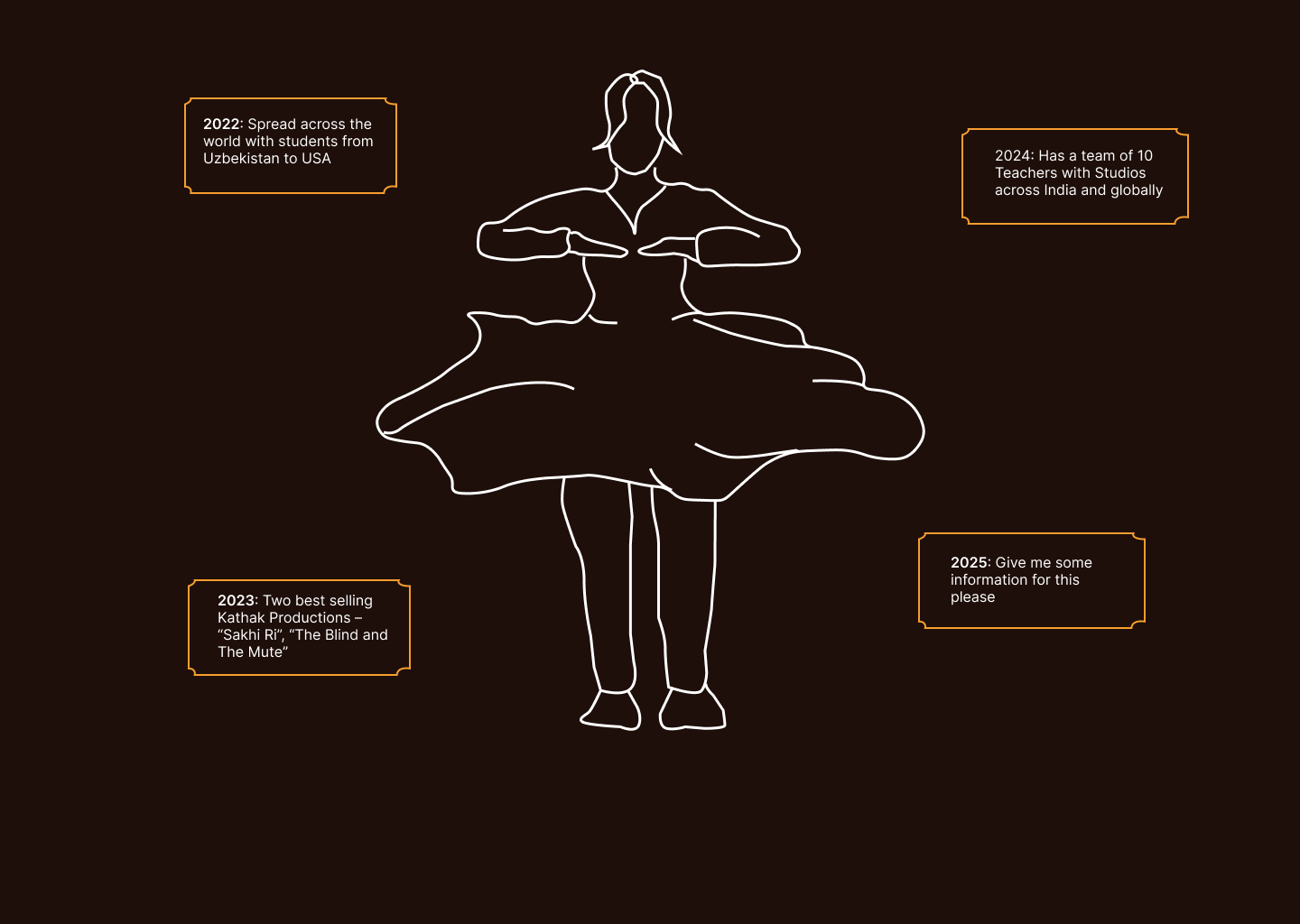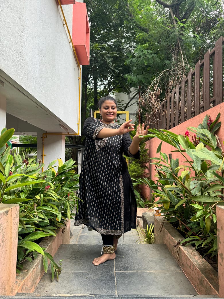 She's a dancer who’s been practicing since she was 3 years old. Over the years, her dedication to dance has become a steady and powerful part of who she is. She found her true calling in Kathak, an Indian classical dance form, and it became clear that this was her passion. While others around her followed the traditional path of corporate success, she stepped away from that lifestyle to pursue what she truly loved. Known for her down-to-earth nature, she's loved and respected by all of her students. Whether they’re beginners or seasoned dancers, they all appreciate her approach. She’s kind, patient, and always makes time to give each person individual attention. Her teaching style is firm but supportive, and she has a way of bringing out the best in her students without overwhelming them. Leaving the corporate world wasn’t an easy choice, but she knew it was the right one. Dance, especially Kathak, gave her a sense of purpose that the daily grind couldn't. Now, as a teacher, she’s fully committed to helping others find that same fulfillment through movement. She’s created a space where learning is not just about perfecting techniques but also about growing as individuals.