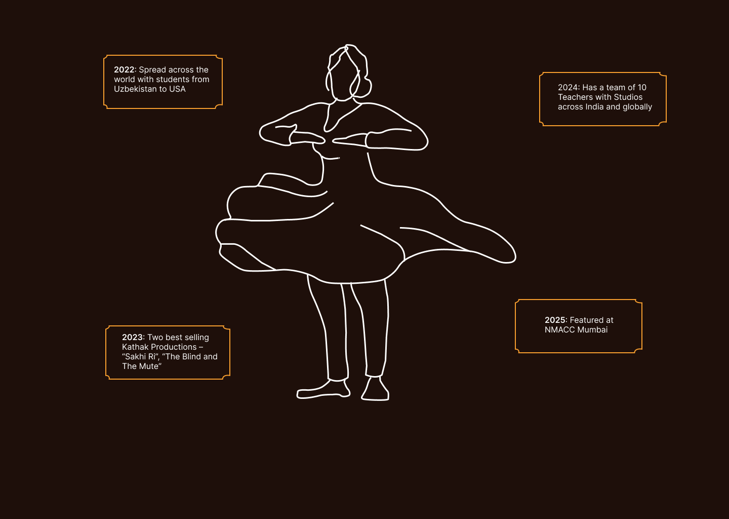 Classes are offered in online and offline formats, enabling students from around the world to engage in high-quality Kathak training. This hybrid model combines accessibility with personalized learning, ensuring that the connection between teacher and student remains strong, whether virtual or in person.