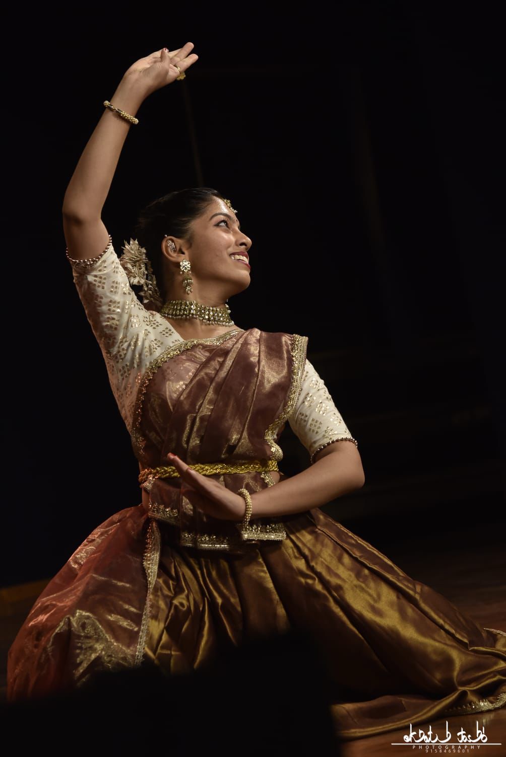 In a striking reversal of visual symbolism, the dancer presents Parvati adorned not in the delicate jewels of conventional femininity, but in Shiva’s own alankars — the tiger skin, the ash, the serpent, and the crescent moon. She is no longer just the soft consort of a powerful god, but a deity of fire and form in her own right.