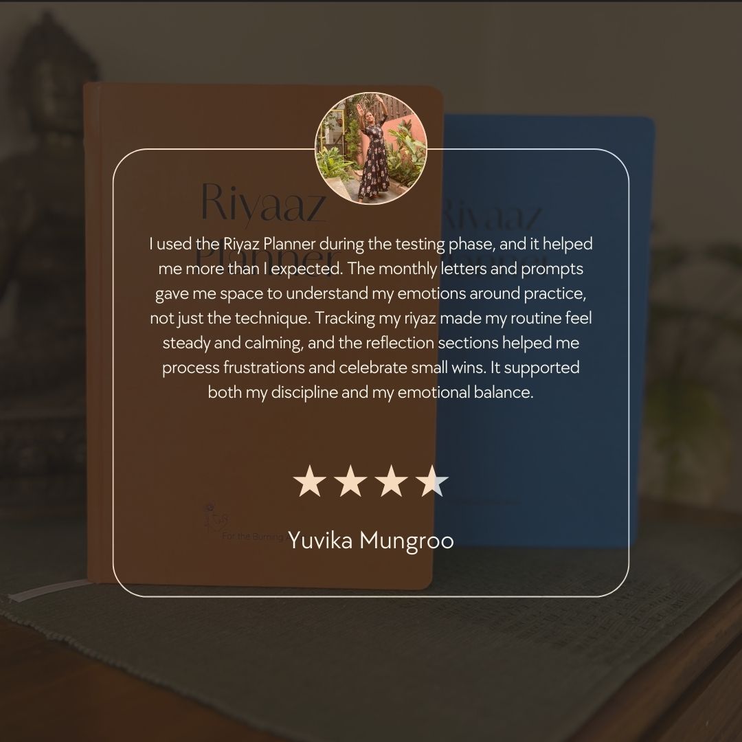 Riyaz, at its heart, is devotion. A quiet commitment to yourself. This planner helps you nurture that devotion without turning it into a task. It invites softness, reflection, and presence into your daily practice—so you grow with tenderness, not urgency.